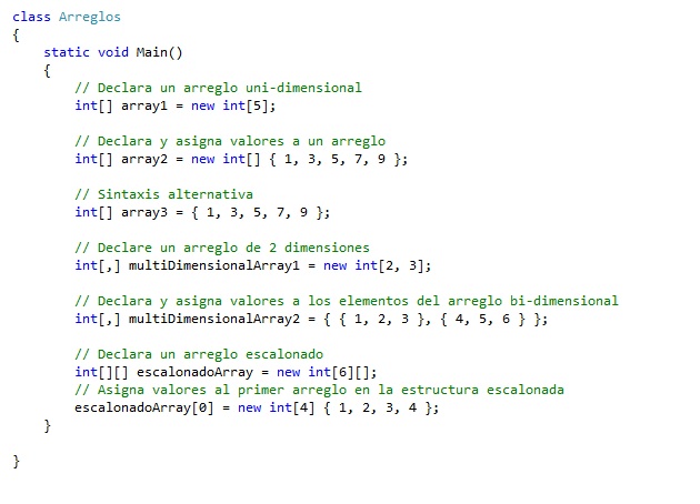 como ocurre en C y C++. Array es el tipo base abstracto de todos los tipos de matriz. Las propiedades y otros miembros de la clase Array se pueden utilizar cuando sea necesario.